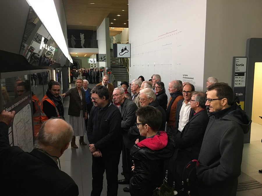 Nous sommes accueillis par la responsable de La fabrique du métro, Coraline Knoff et son équipe qui nous présente la conception des lieux dont l’idée d’origine date de la phase des études de faisabilité du Grand Paris Express (période 2011/2012). Ouvert dans la configuration actuelle depuis le 18 septembre 2018, la Fabrique du métro a pour objectif d’être un site d’immersion dans le Grand Paris Express pour les élus, les entreprises intervenantes et le grand public. L’aménagement des gares y est présenté en grandeur réelle par des maquettes, des panneaux et des vidéos dans un site sur deux niveaux d’un total de 2500 m2 afin d’être au cœur de l’aventure humaine et technique de la construction du nouveau métro. Cet aménagement évolue en fonction des marchés d’équipement signés. Pour les scolaires, la visite permet aussi de découvrir les métiers de la construction d’une infrastructure du transport.