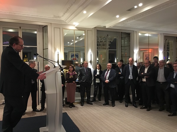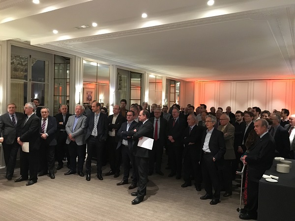 Les traditionnels voeux de l'AFFI , se sont déroulés le 28 janvier 2020 dans les salons de l’Automobile Club de France. L'invité d’honneur de l'AFFI était monsieur Xavier Neuschwander, président de la commission « Technique et Innovation » à la Fédération Nationale des Travaux Publics et ancien Directeur Général Europe, Rail et Spécialités chez EUROVIA.