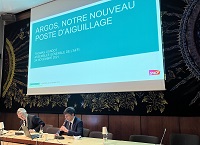 Son intervention a commencé par retracer les débuts des postes d'aiguillages de technologie informatique pour poser le contexte dans lequel est né le projet ARGOS. Ensuite les multiples objectifs de cette nouvelle régnération de poste d'aiguillage ont été présentés en mettant en avant la démarche de partenariat d'innovation entre SNCF Réseau et 4 groupements d'industriels qui a démarré en 2018. Enfin les évolutions techniques portées par le projet ARGOS actuellement en cours de développement autour de 3 sites tête de série ont été illustrées par la nouvelle architecture technique et des exemples d'innovations.
